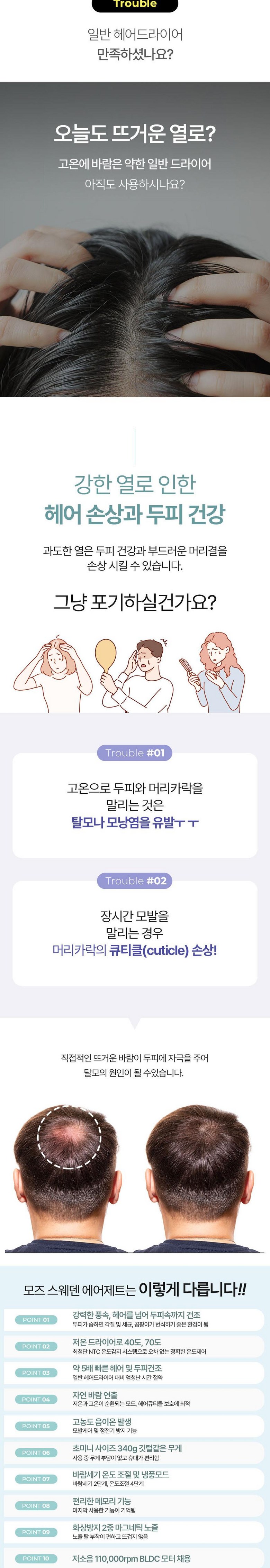 기존에 쓰던 드라이기는 너무 뜨거워서 (온도조절 2타입)