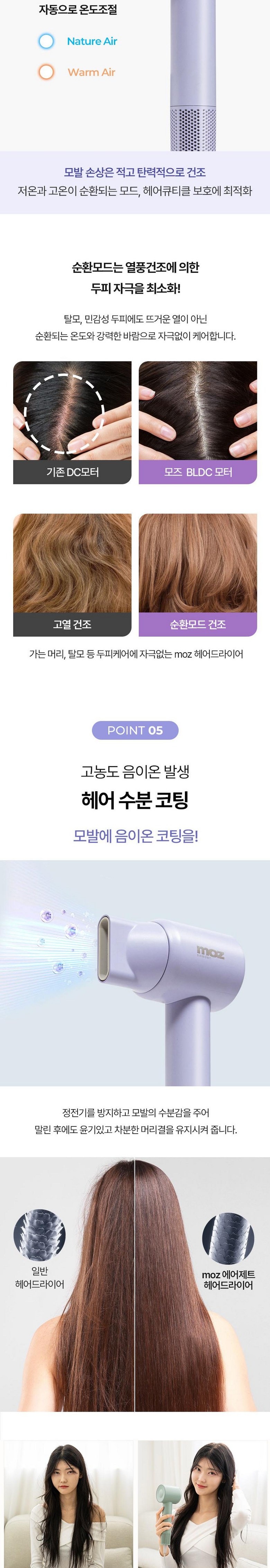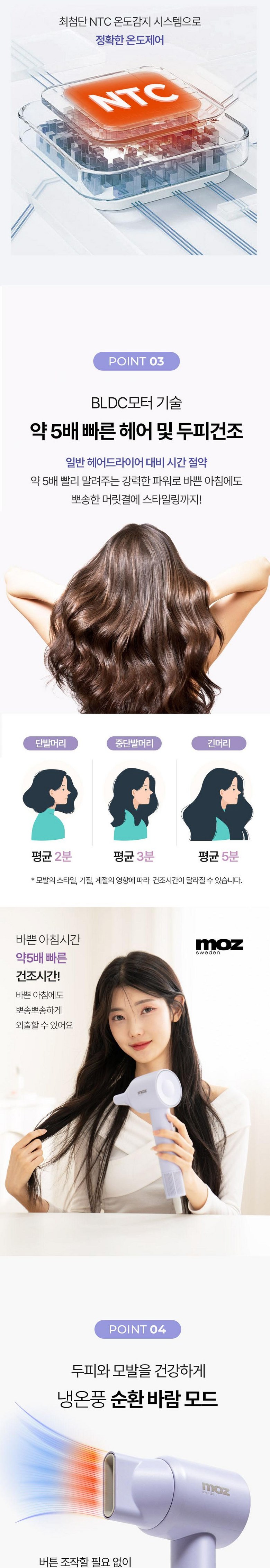 모터가 확실히 다릅니다. 음이온이 나와 머릿결 보호도 되고 시간 절약되니 좋아요.