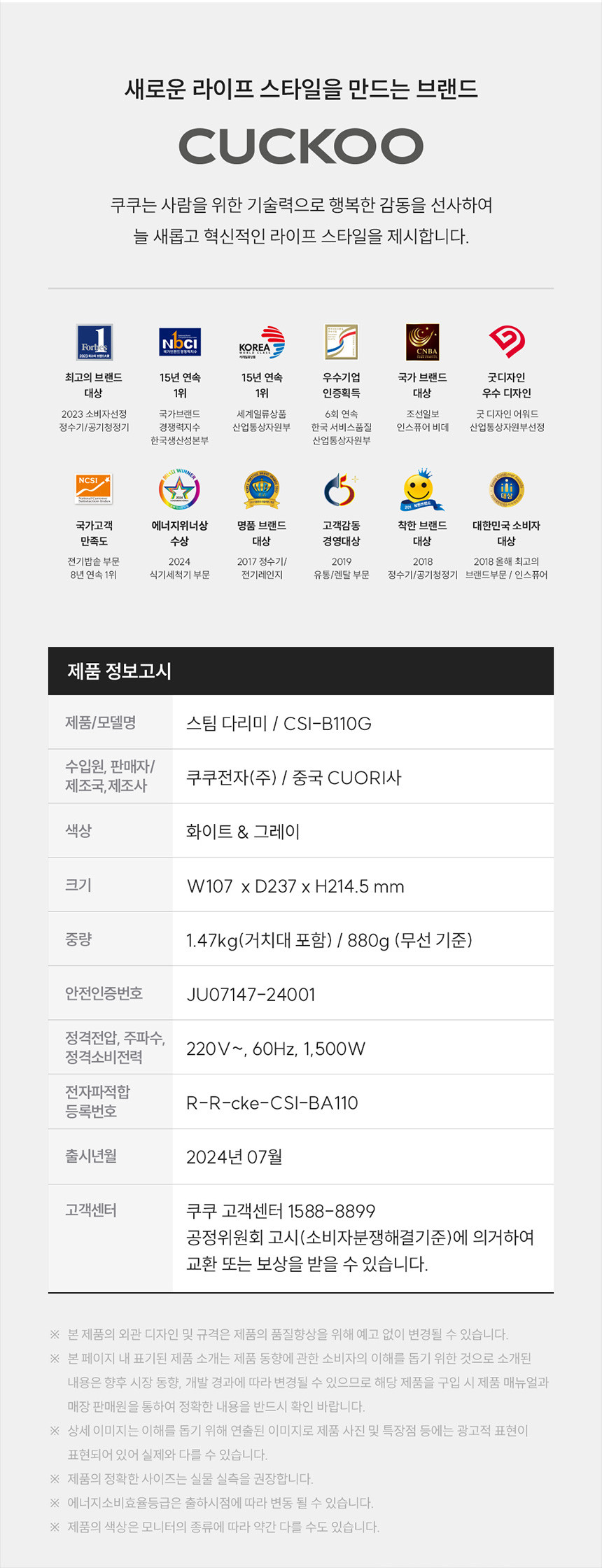 | A/S 책임자와 전화번호 | 상품페이지 참고 |