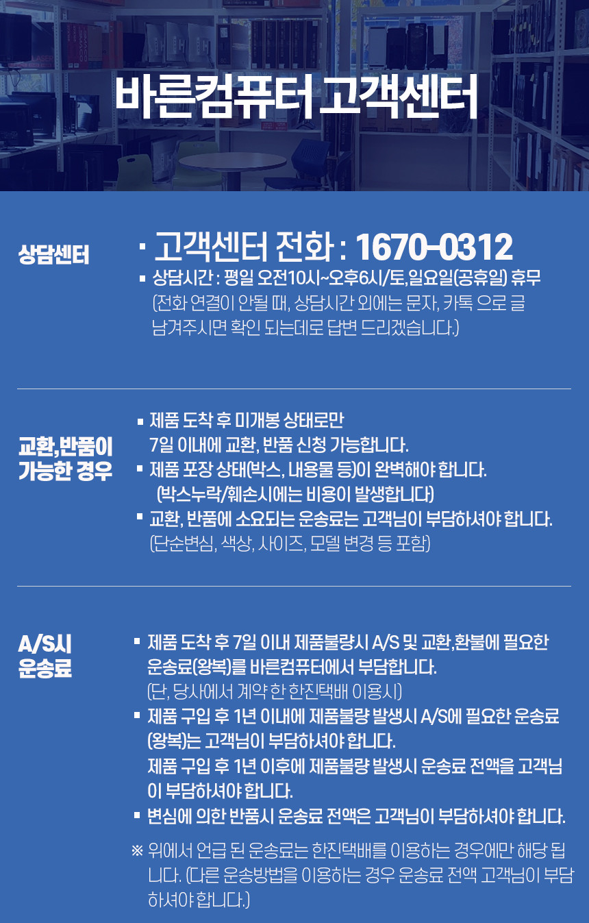 | A/S 책임자와 전화번호 | 상품페이지 참고 |