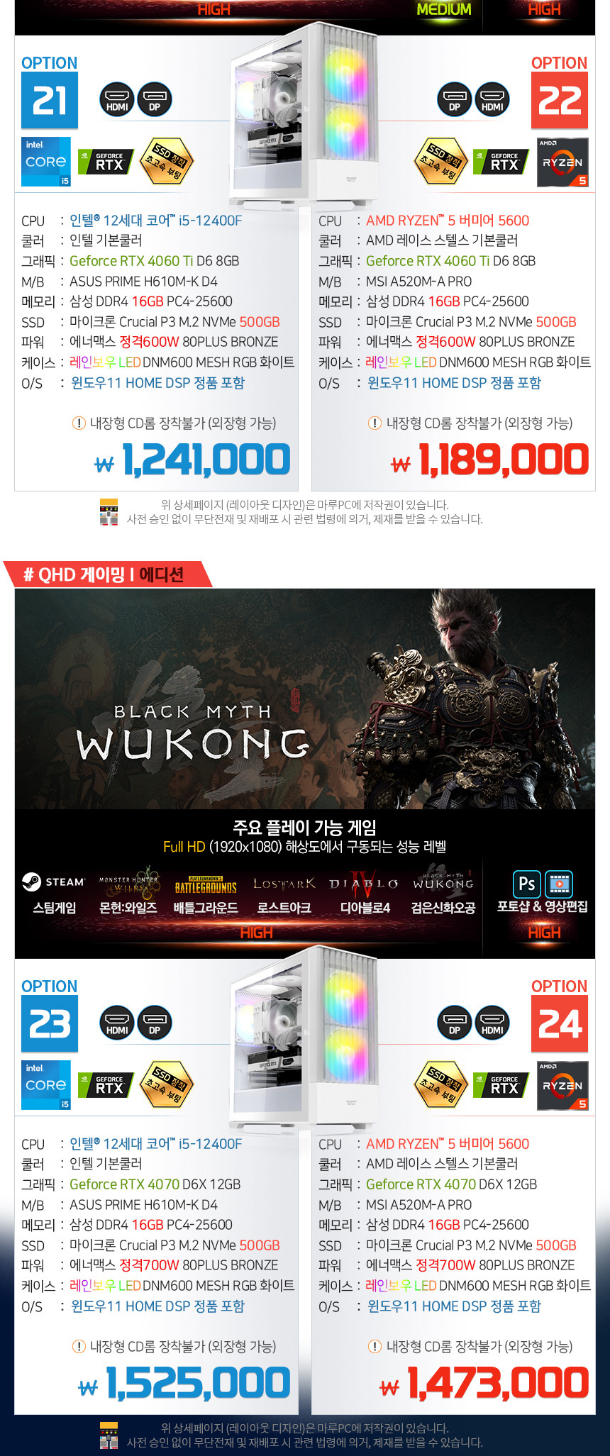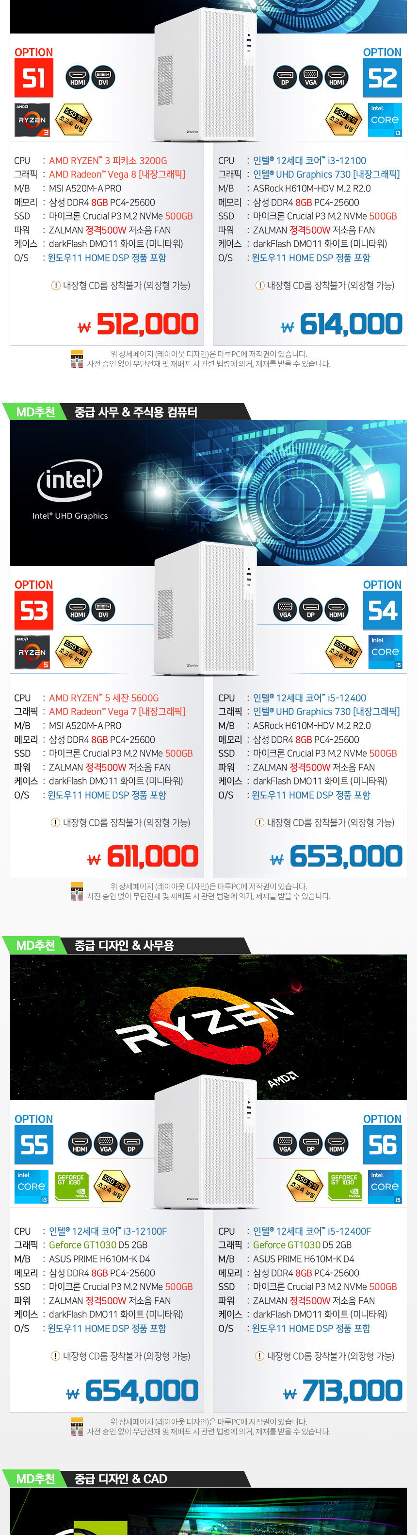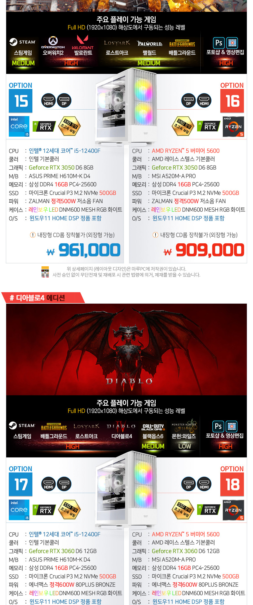 인텔로 저렴하게 구성 되어 있길래 구매했습니다!!