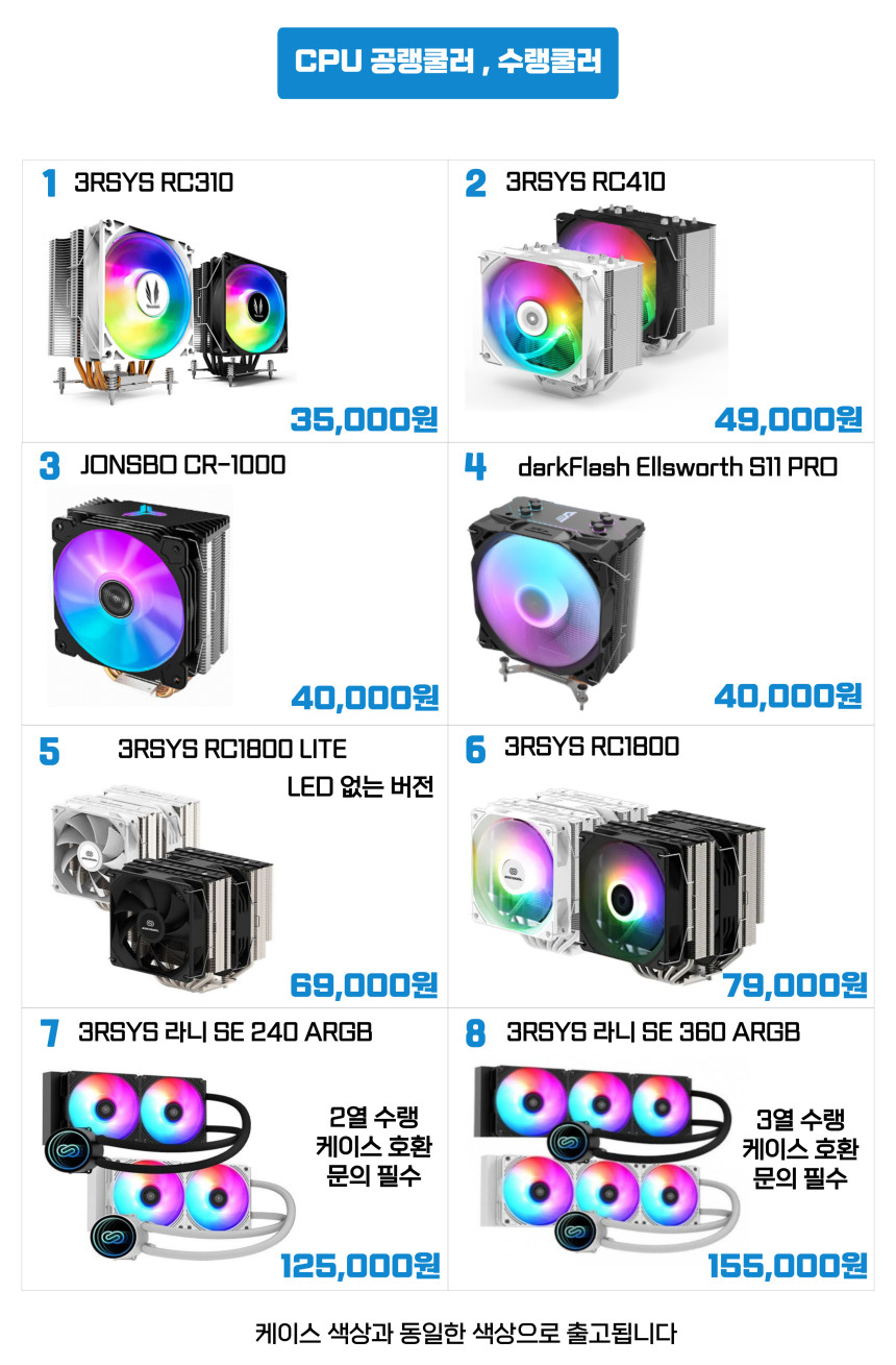 -CPU 화이트 공랭쿨러+그래픽카드화이트+케이스 화이트 기본 탑재입니다-