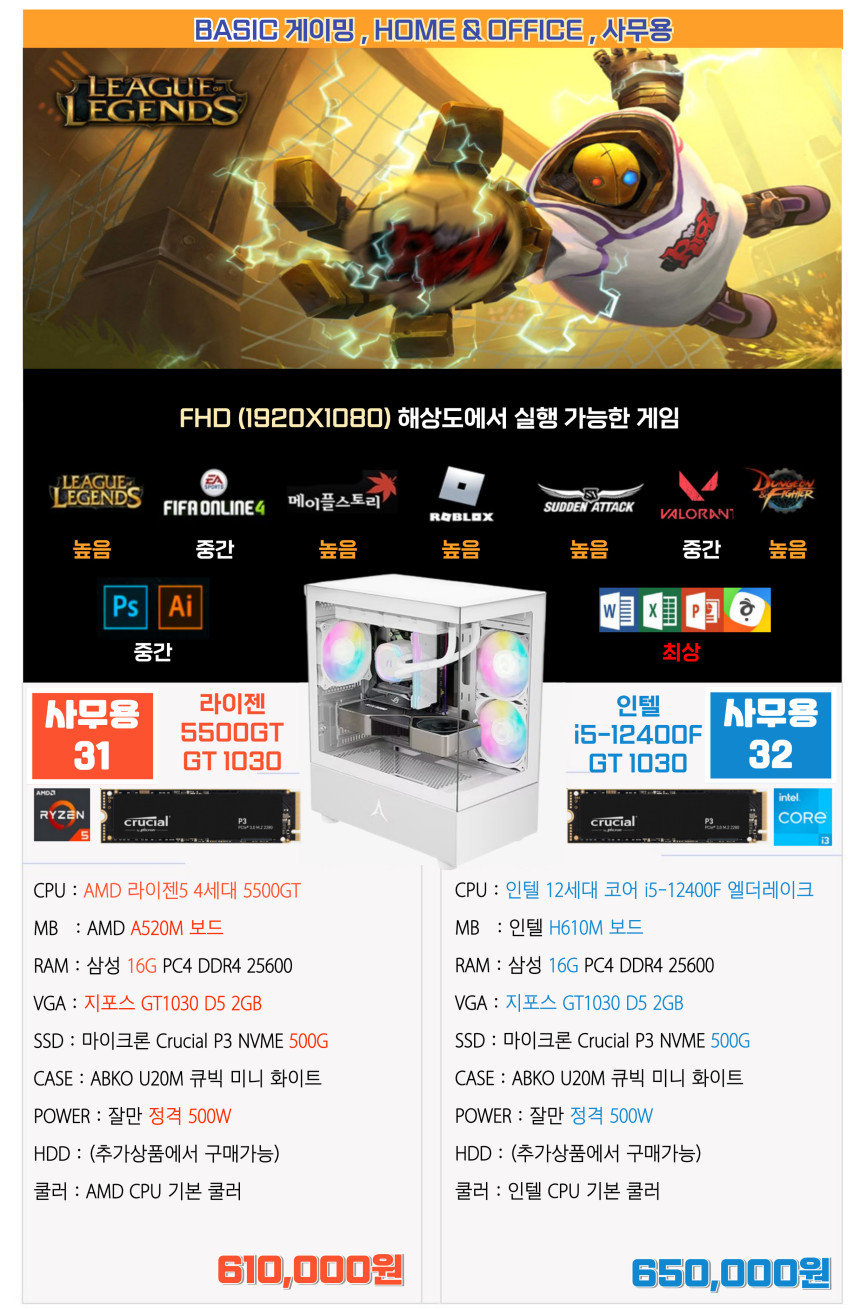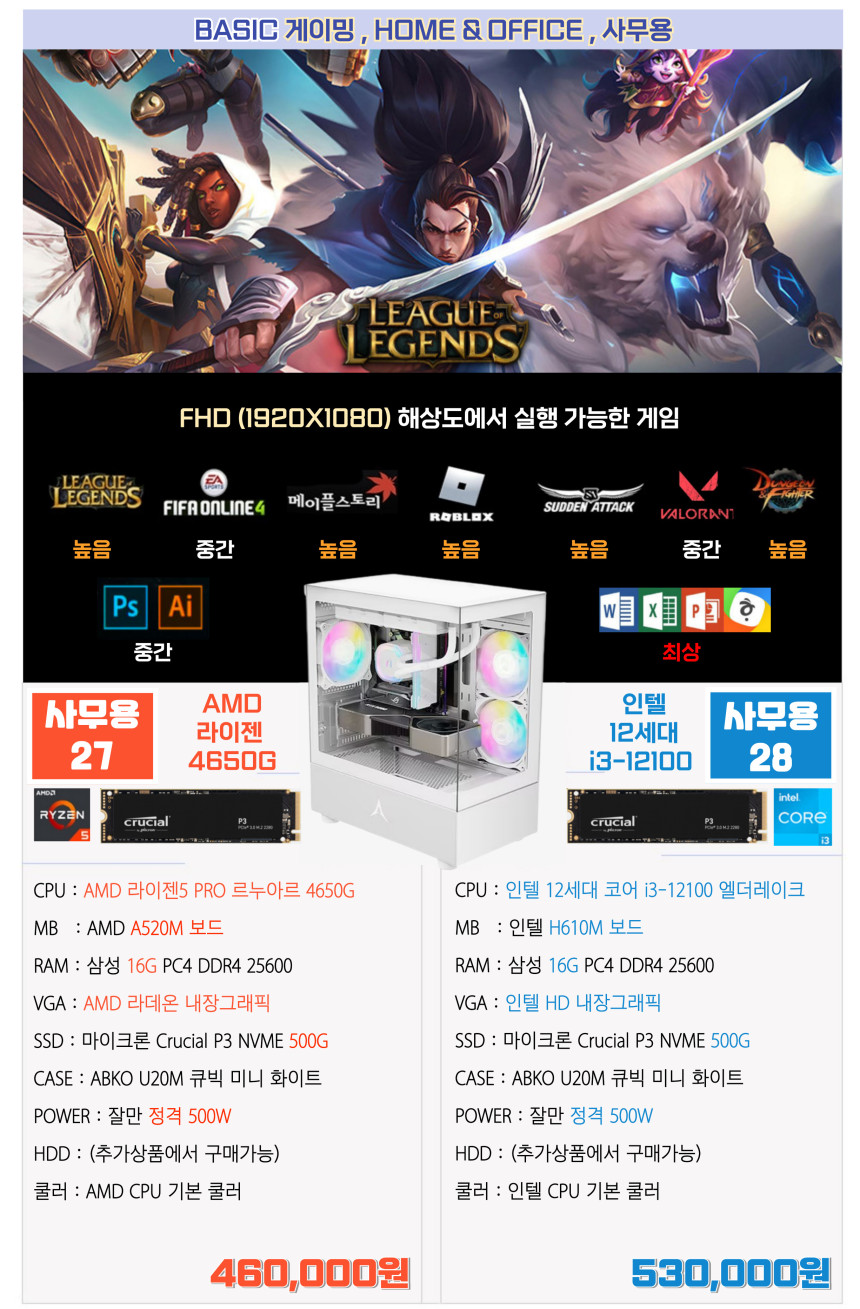 AMD,인텔 사무용 본체