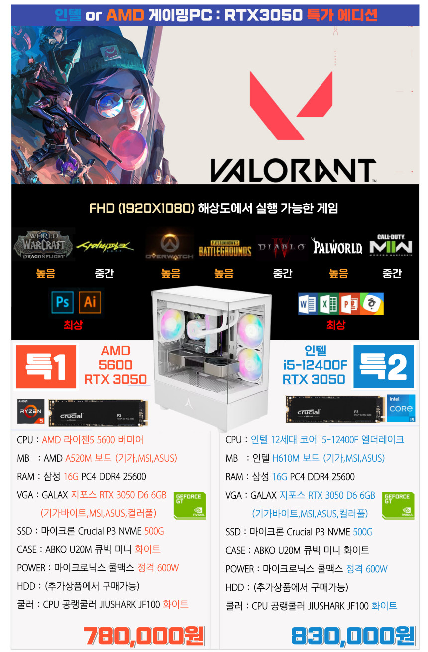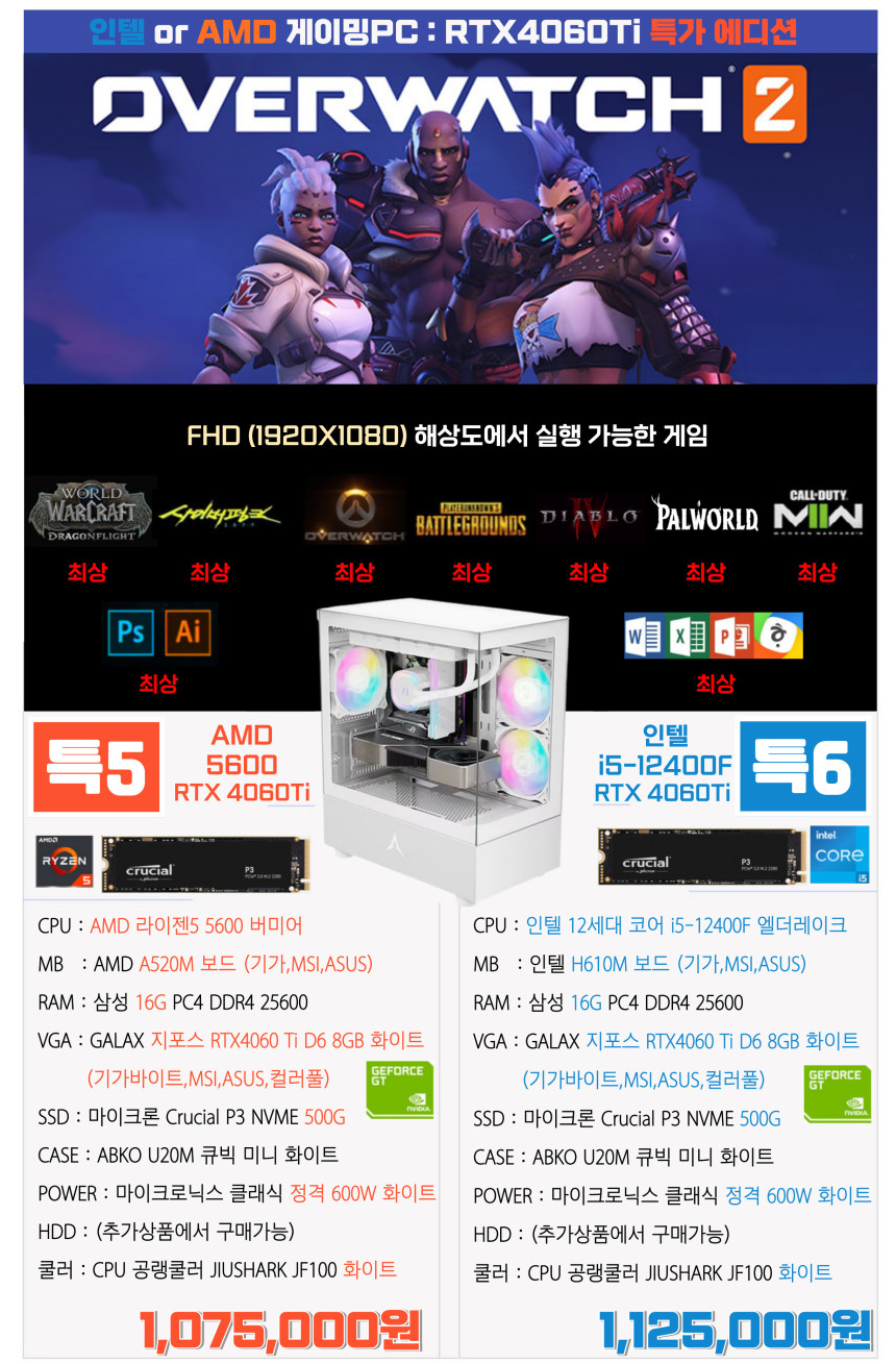-CPU 화이트 공랭쿨러+그래픽카드화이트+케이스 화이트+파워 화이트 기본 탑재입니다-