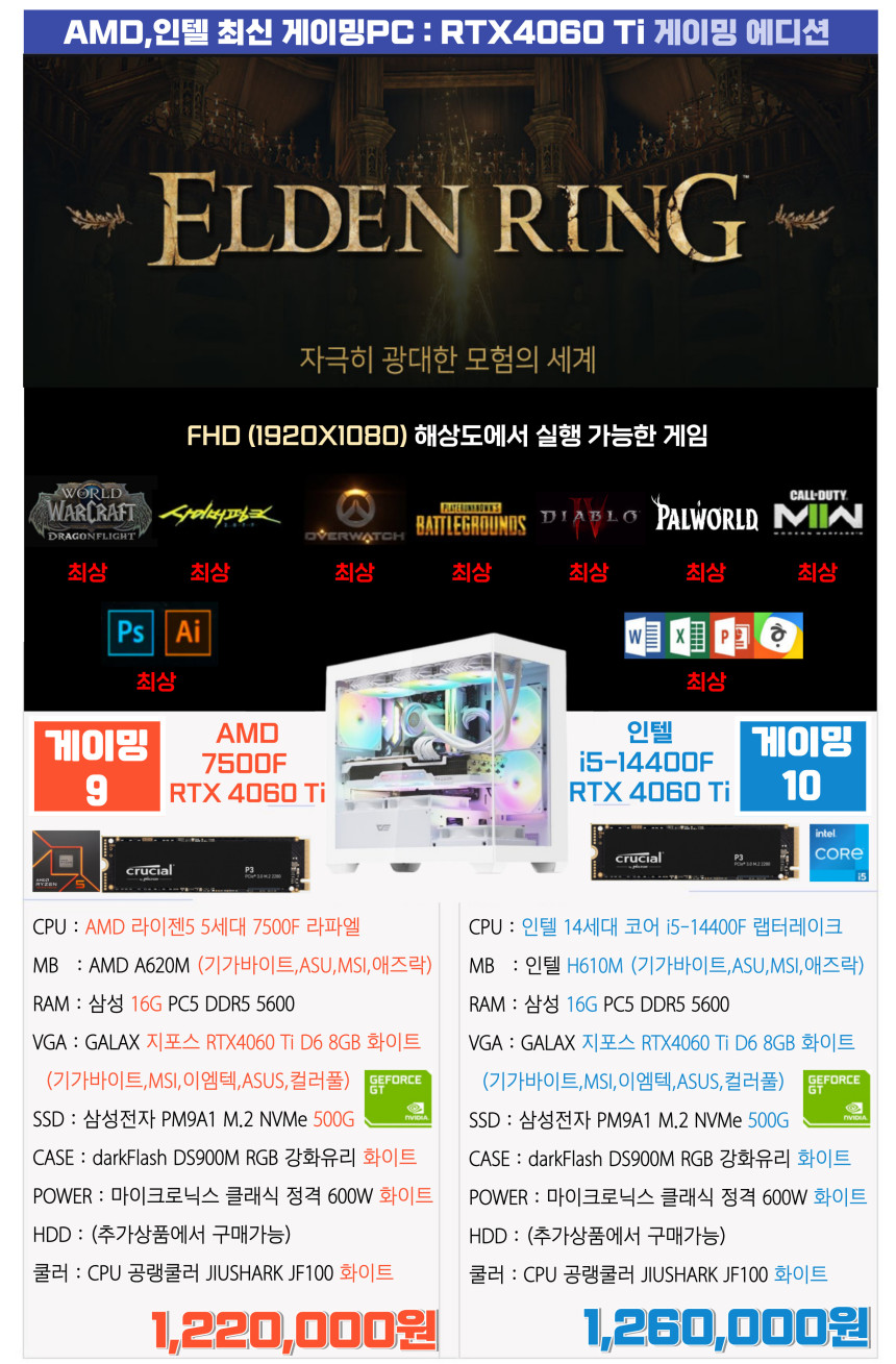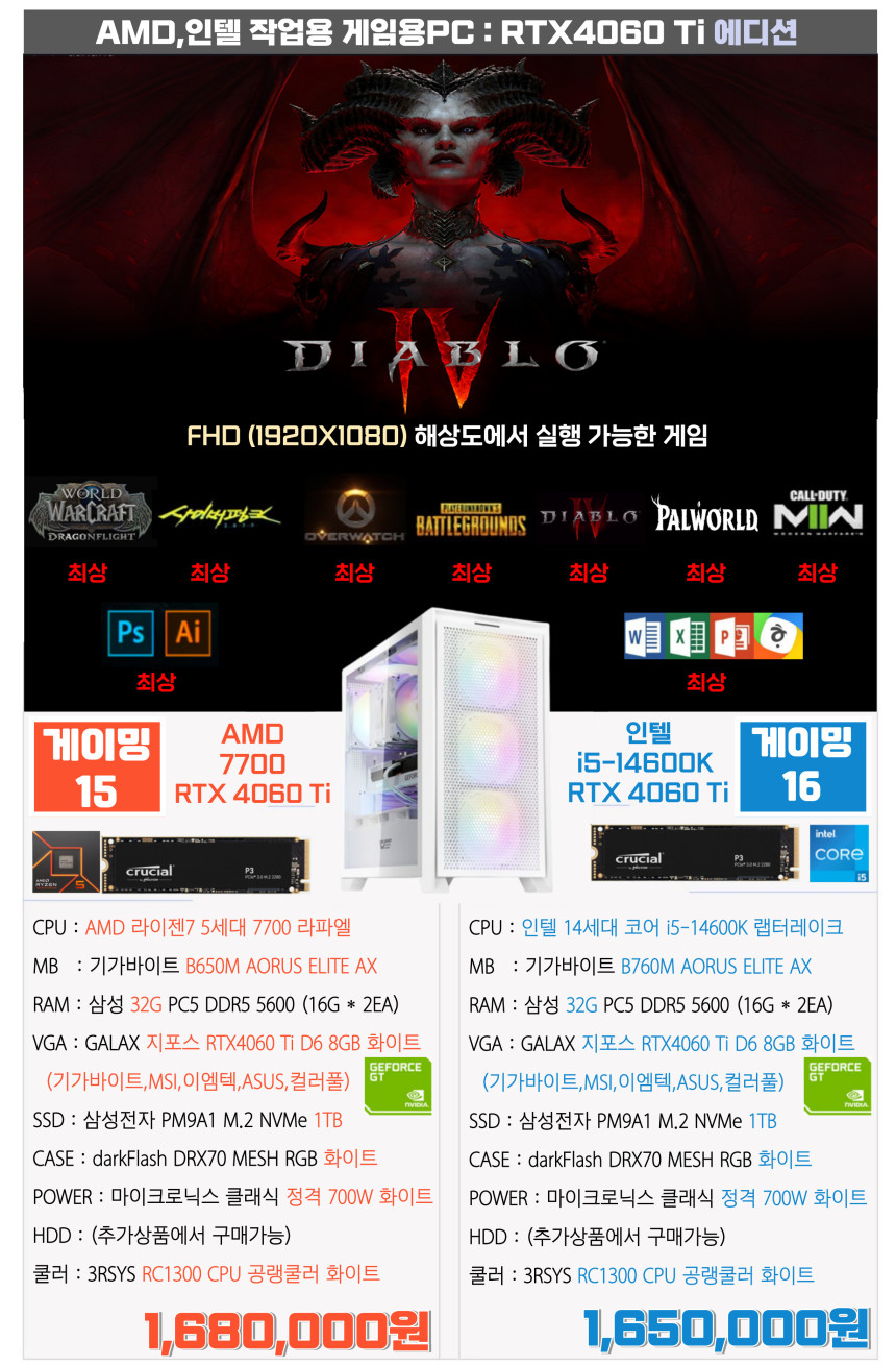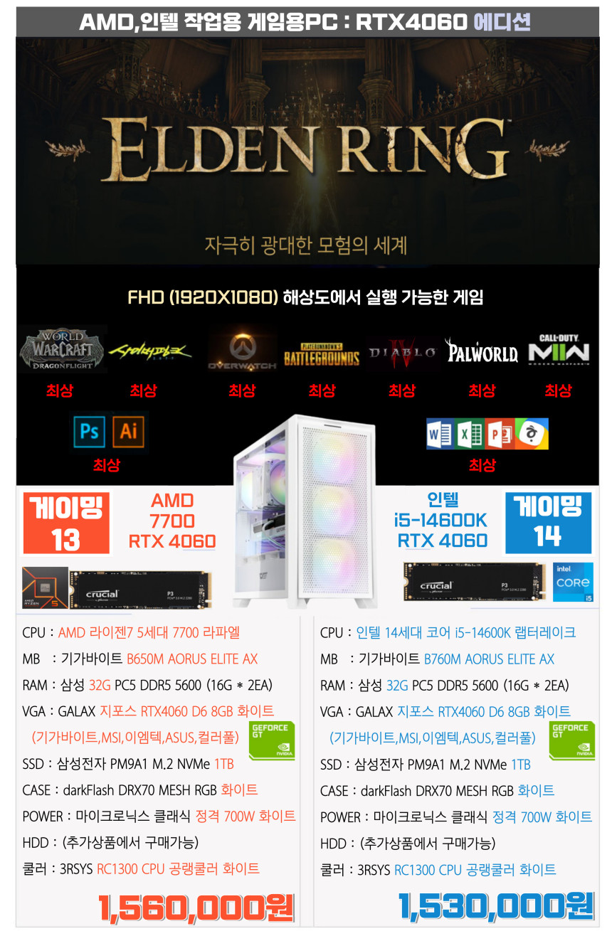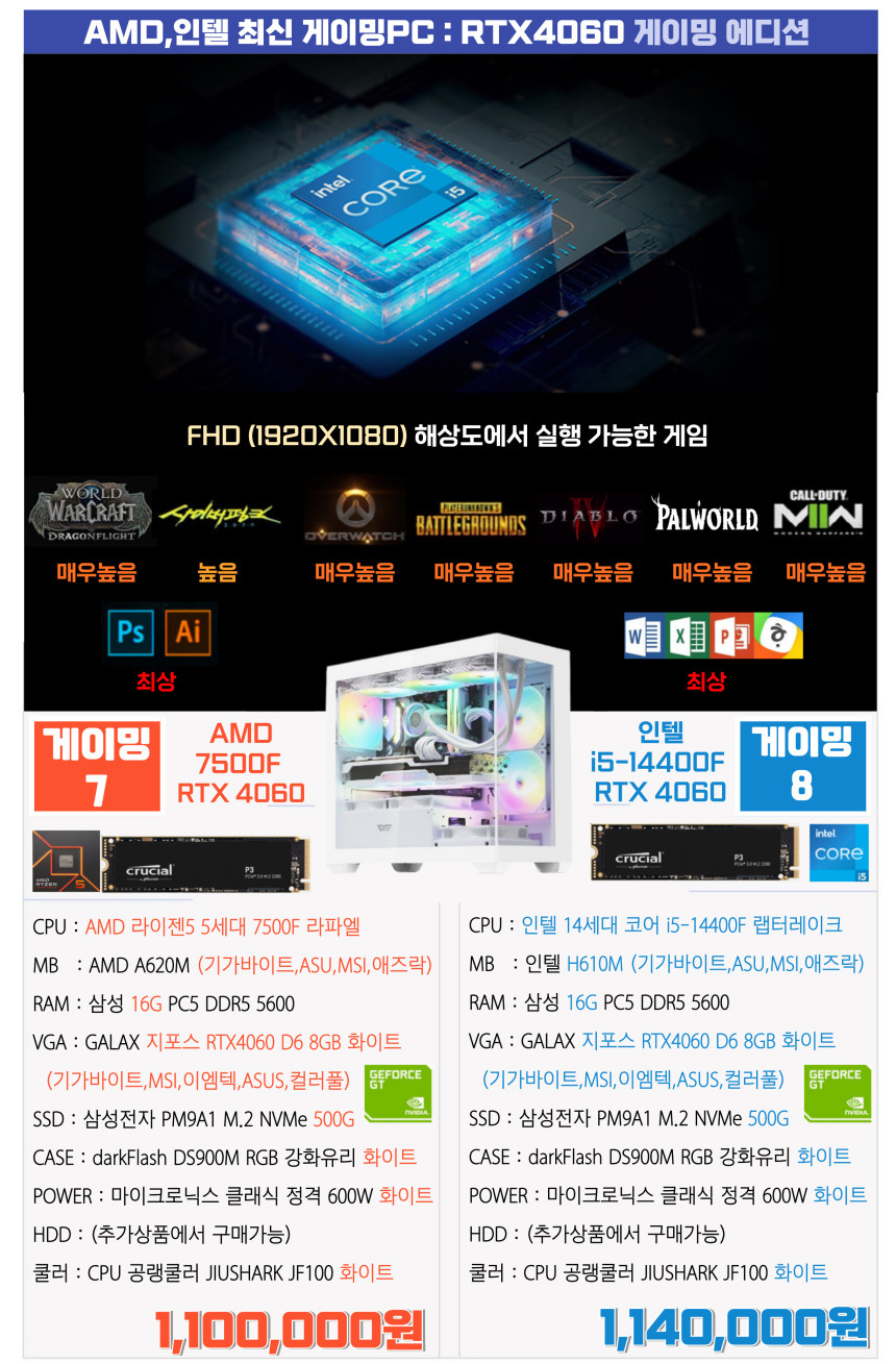 라이젠7 7700 , 인텔 i5-14600K = 둘다 i7급의 성능 (12세대 i7급 이상)