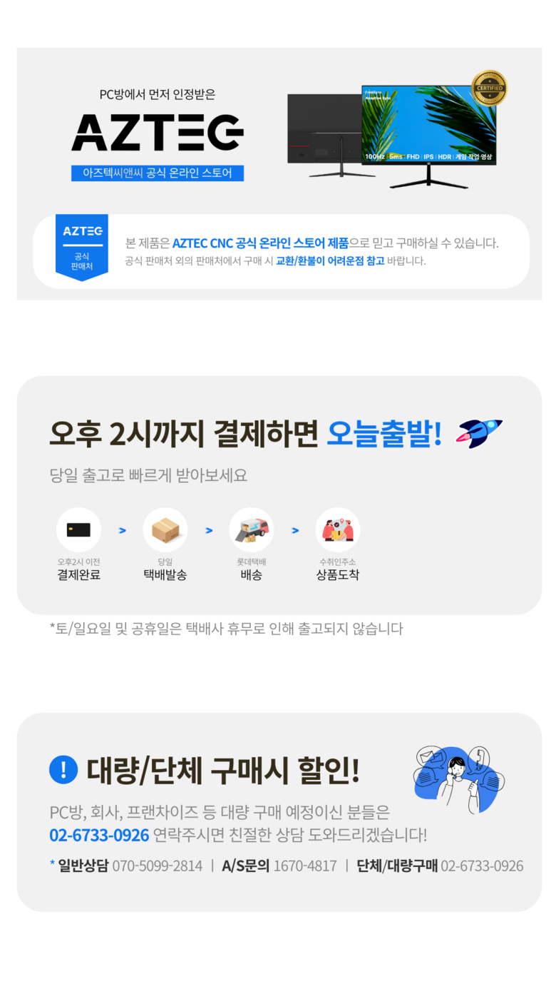 | A/S 책임자와 전화번호 | 상품페이지 참고 |