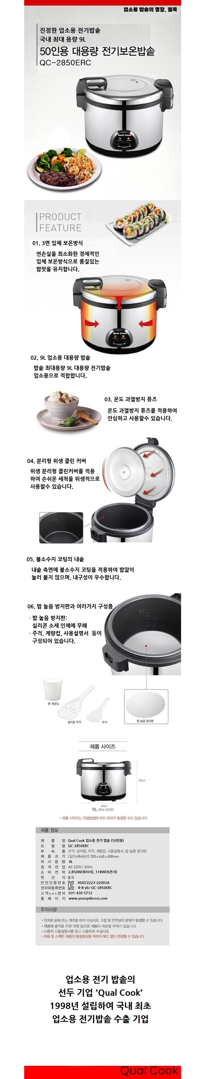 퀄쿡 대용량 업소용 영업용 50인용 전기밥솥 전기보온밥솥 요약정보 및 구매