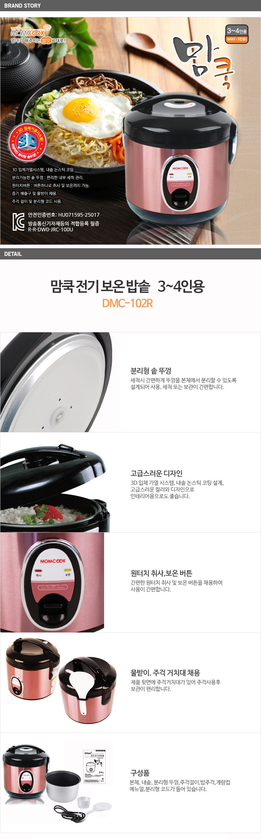 보온 상태에서도 밥맛 유지가 잘 돼서, 아침에 지어 놓고 퇴근 후 먹거나 주말에 미리 준비해 놓기에도 안성맞춤입니다.