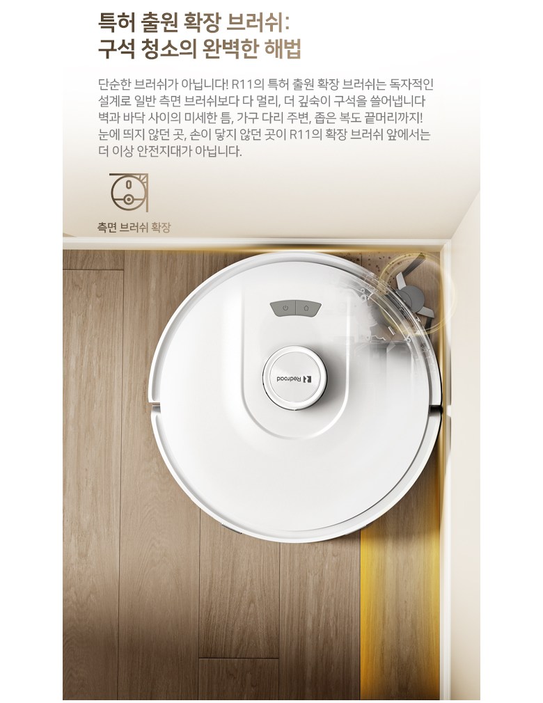바닥에 작은 장애물, 전선까지 다 피해서 청소합니다.