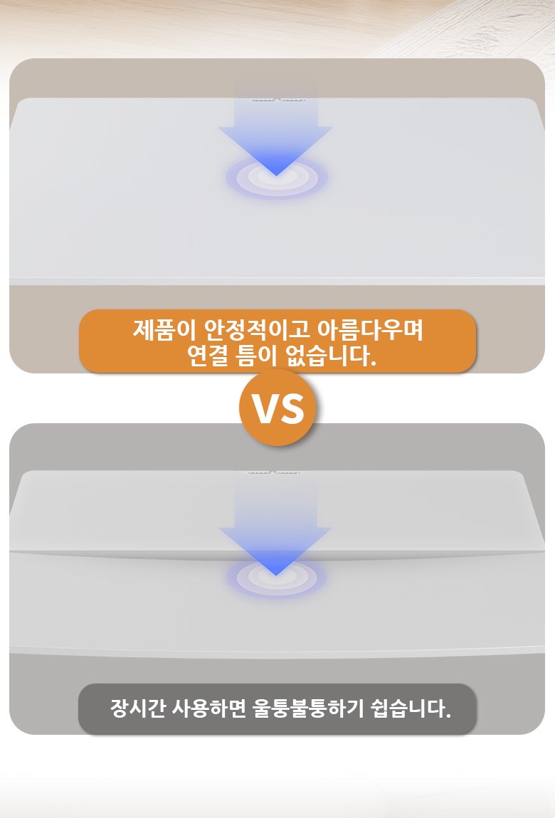 일반적으로 철제 프레임과 나무 상판 구조의 저가형 책상은 약간 흔들림이 생기기 마련인데,