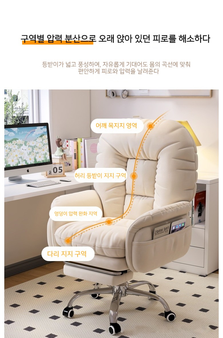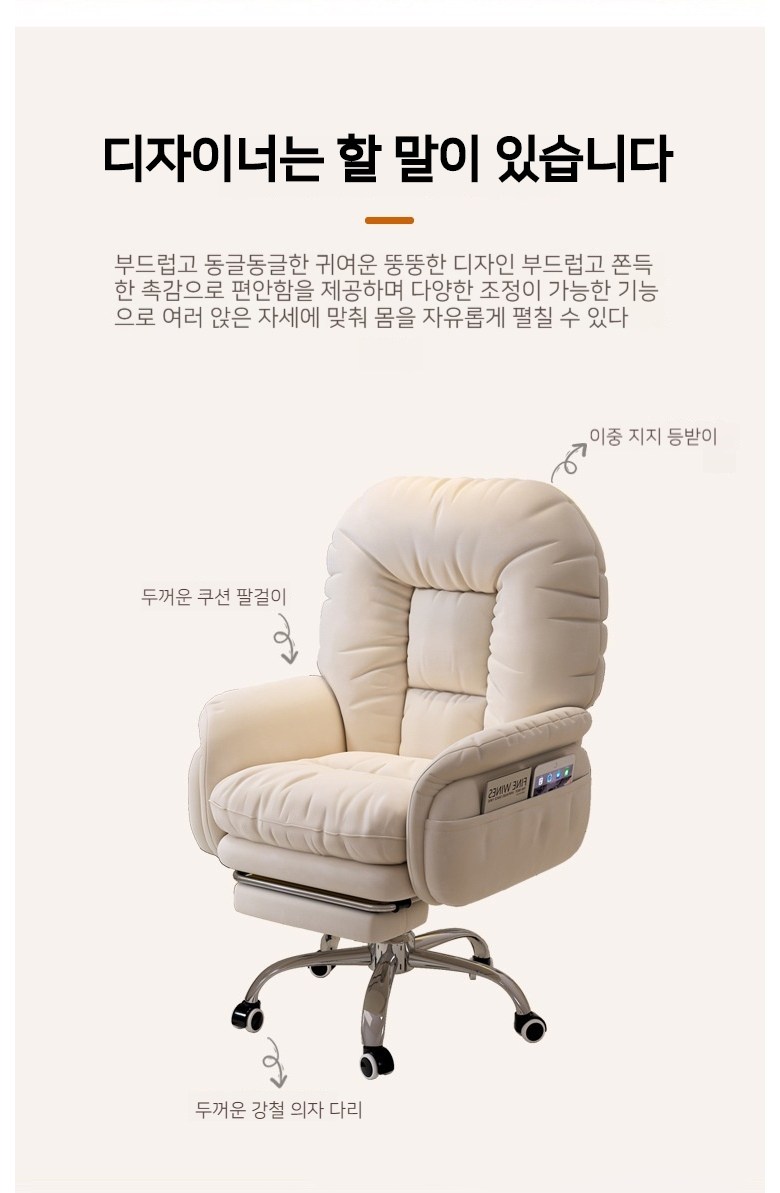 허리와 목이 쉽게 피로해지기 때문에 편안하게 몸을 지지해 주는 의자네요