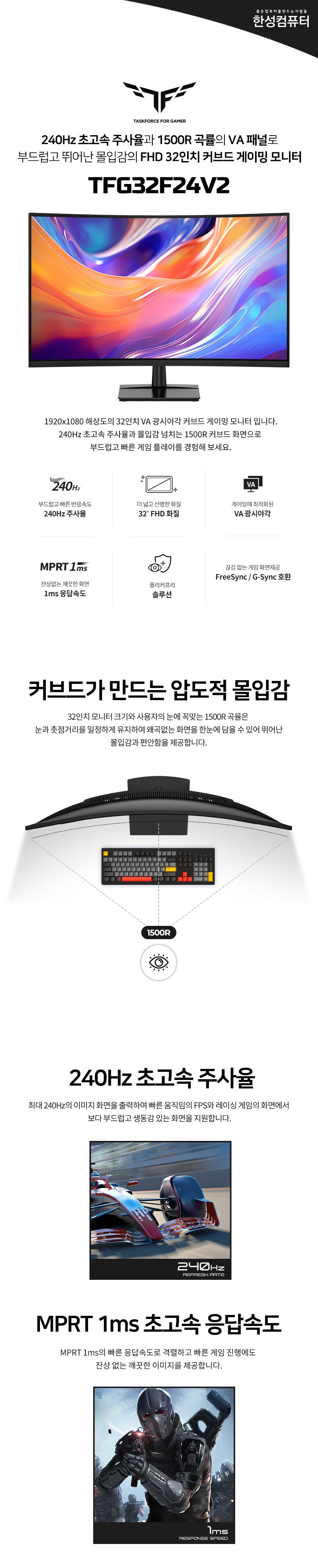 한성컴퓨터 FHD 240Hz 게이밍 커브드 모니터 > 모니터
