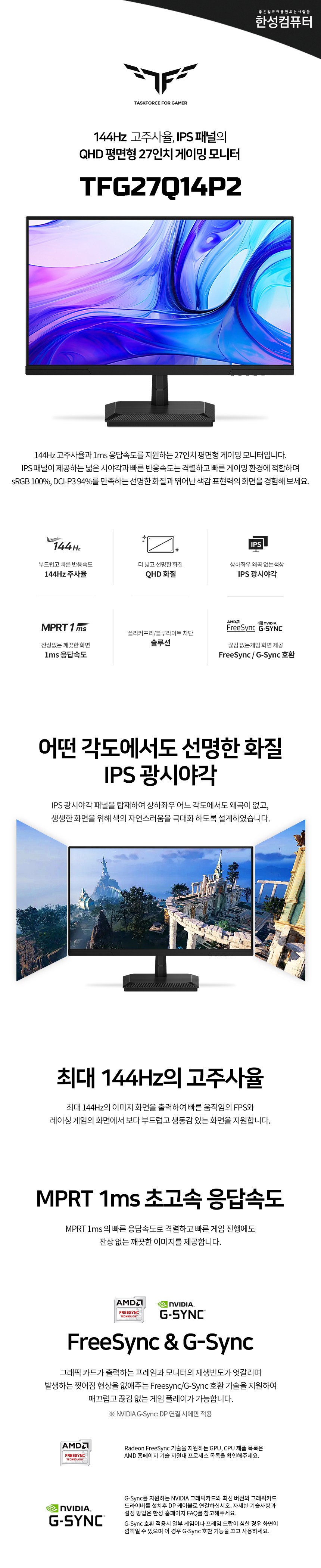 한성컴퓨터 QHD 게이밍 무결점 모니터 > 모니터