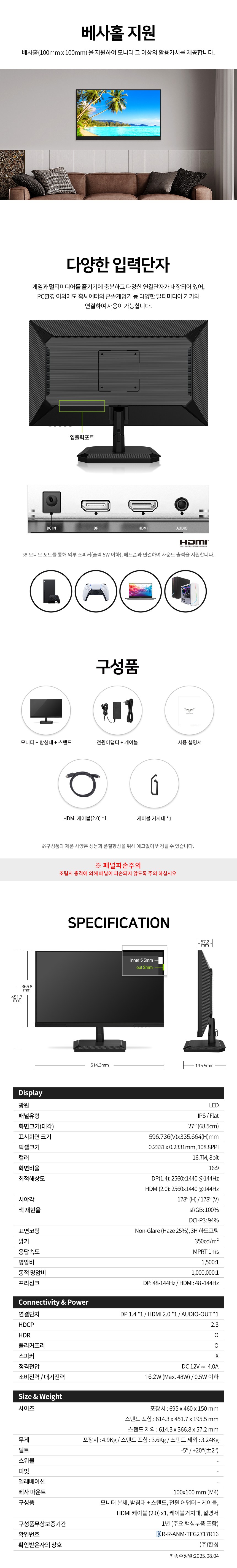 한성컴퓨터 QHD 게이밍 무결점 모니터 요약정보 및 구매