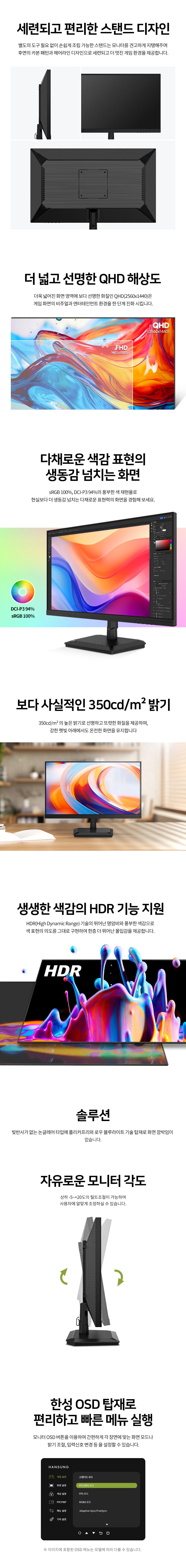 • 한성컴퓨터 QHD 게이밍 무결점 모니터